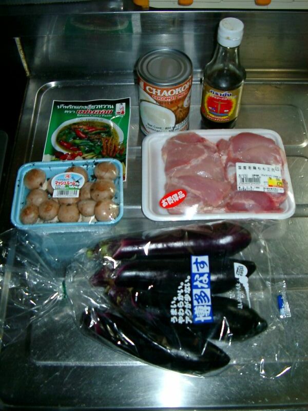 マッシュルームを投入、サラダオイルを椰子油に代替、パクチー(バジル代替可)を添加すると本格的。