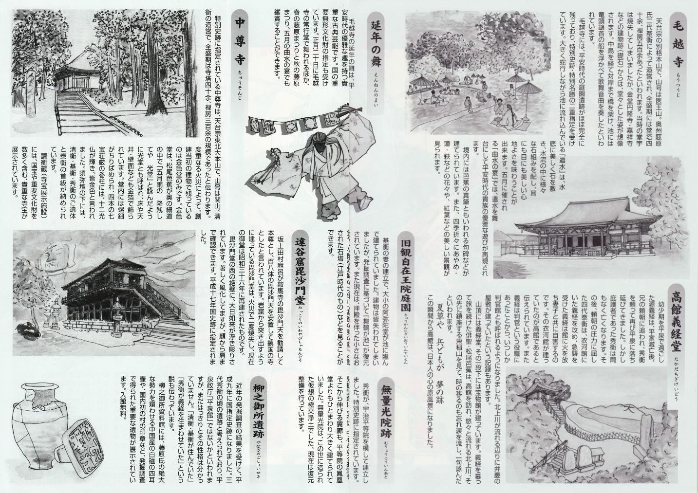 旅館−−−−柳之御所資料館−−−−義経堂(束稲山を眺望)−−−−