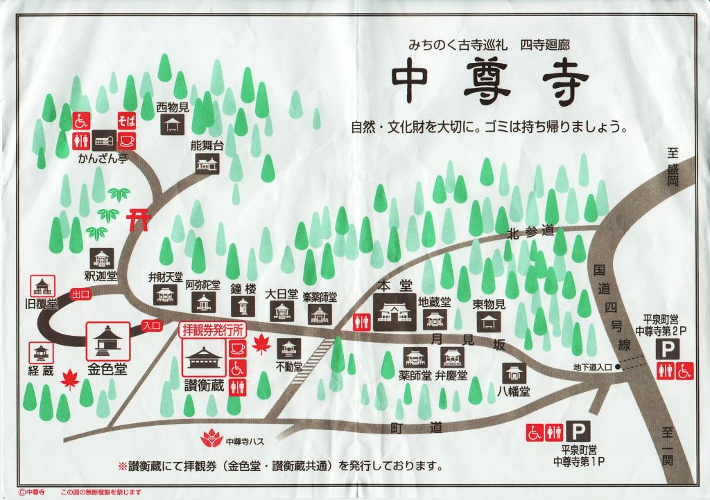 −−−−中尊寺(西行の歌碑など)−−−−衣川−−−−毛越寺−−−−