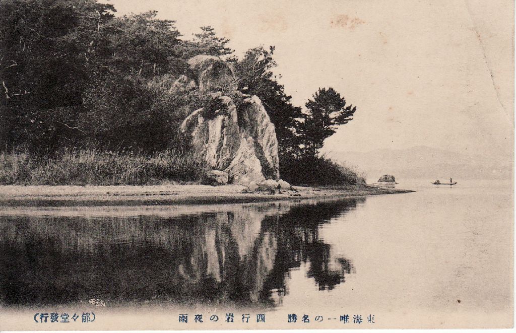 東海唯一の名勝 西行岩の夜雨 (郁々堂發行)